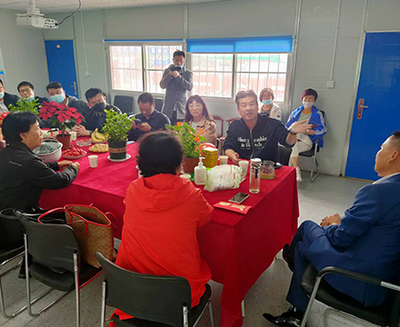 在會議室召開慶祝封頂會議,項目經理侯紅磊匯報項目施工情況,總監理工程師講話。